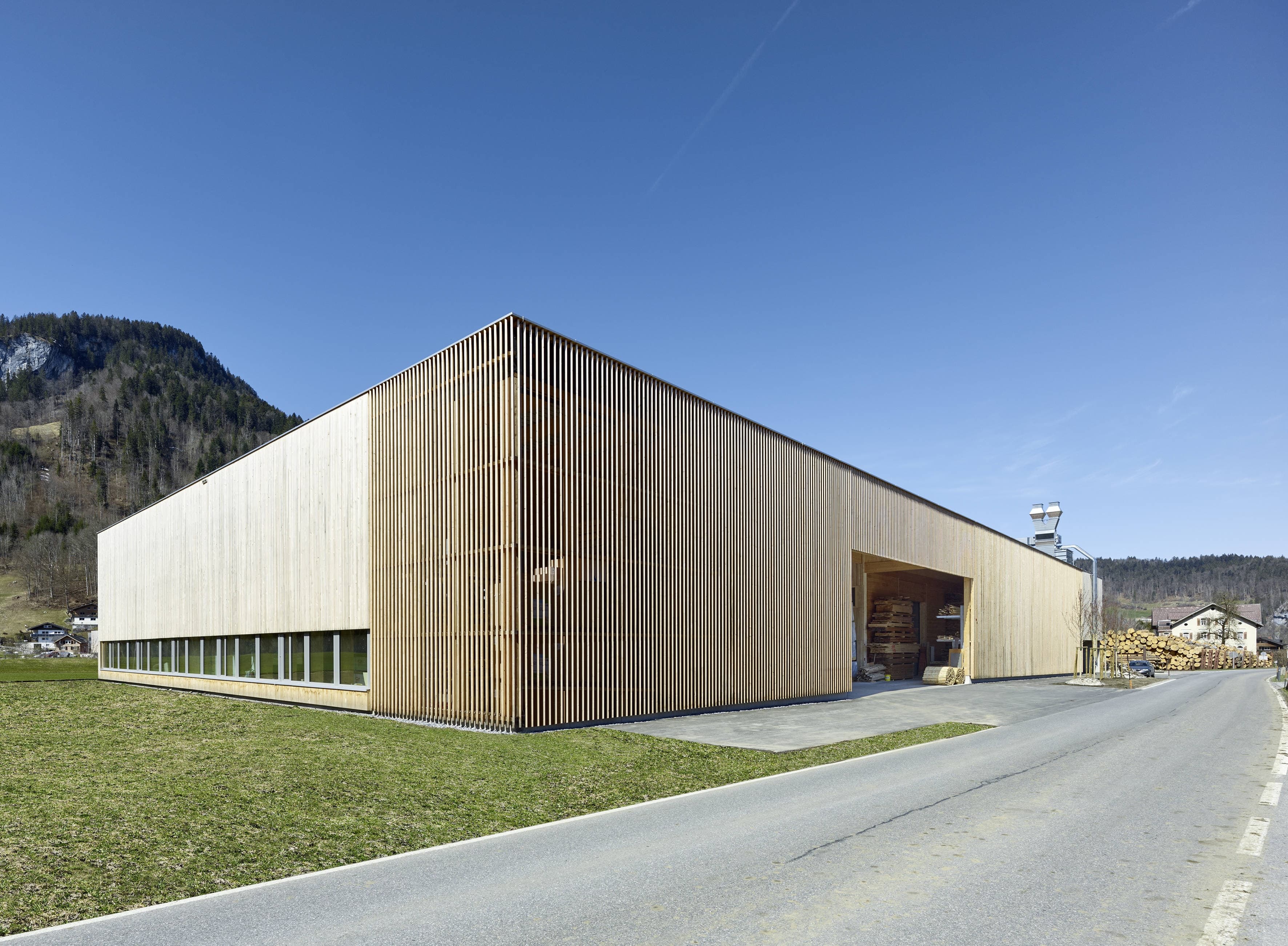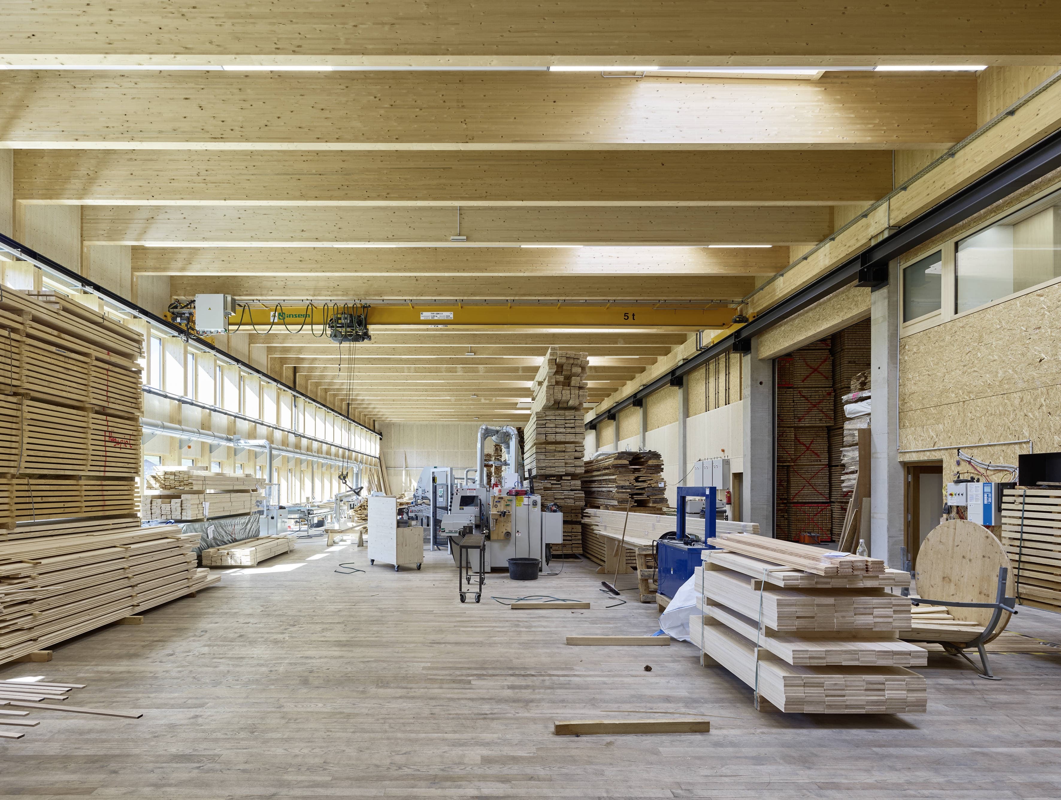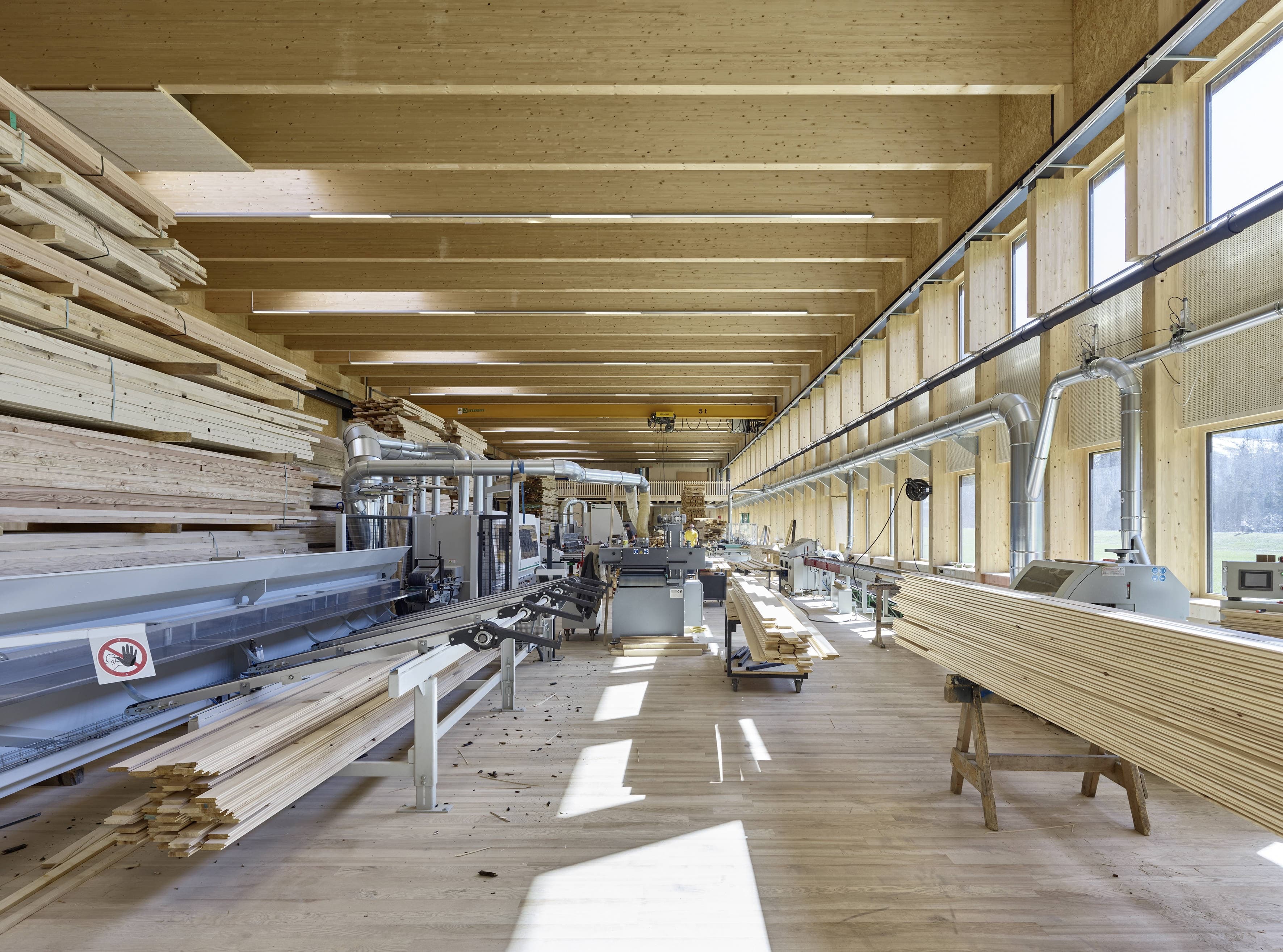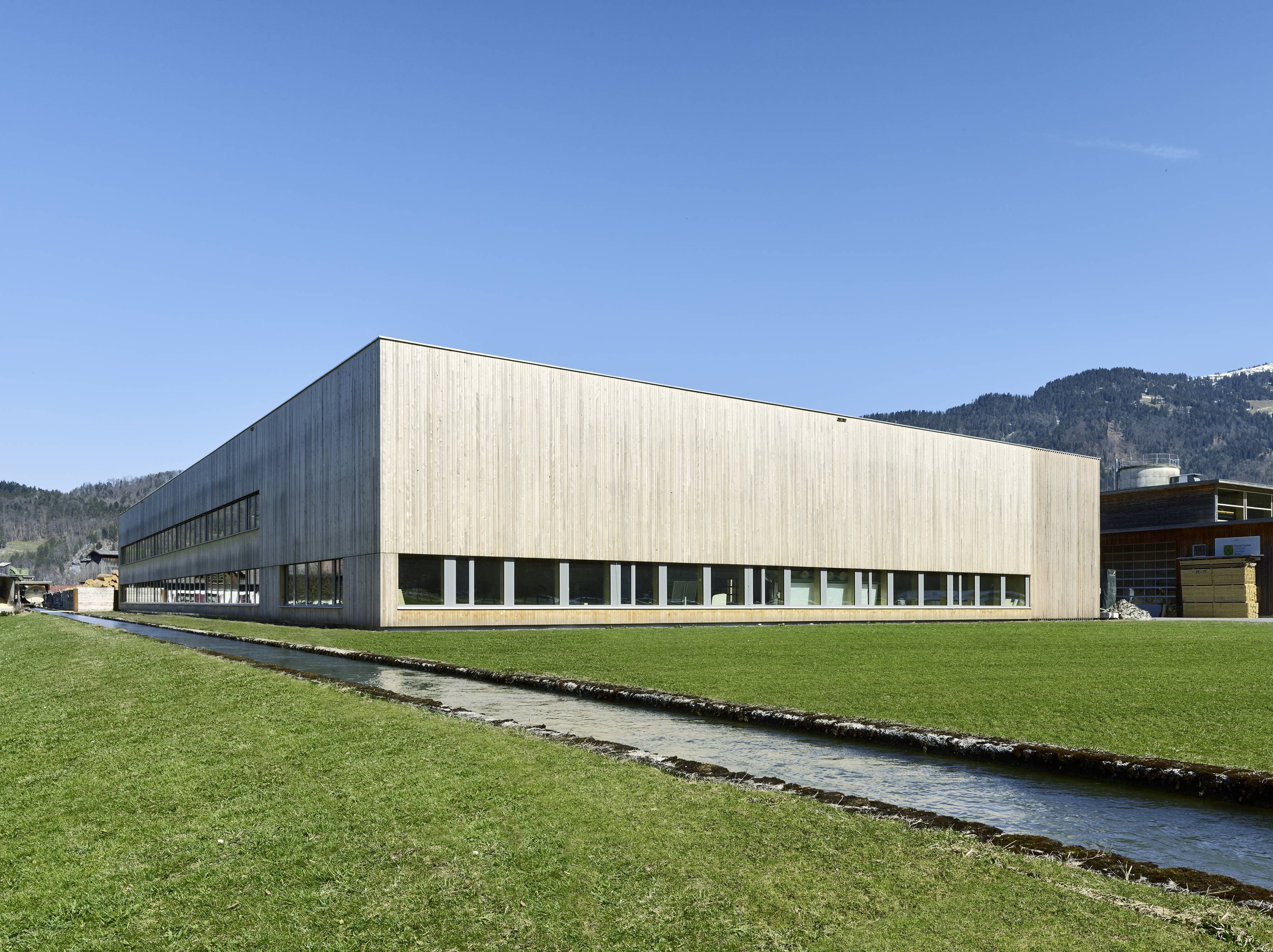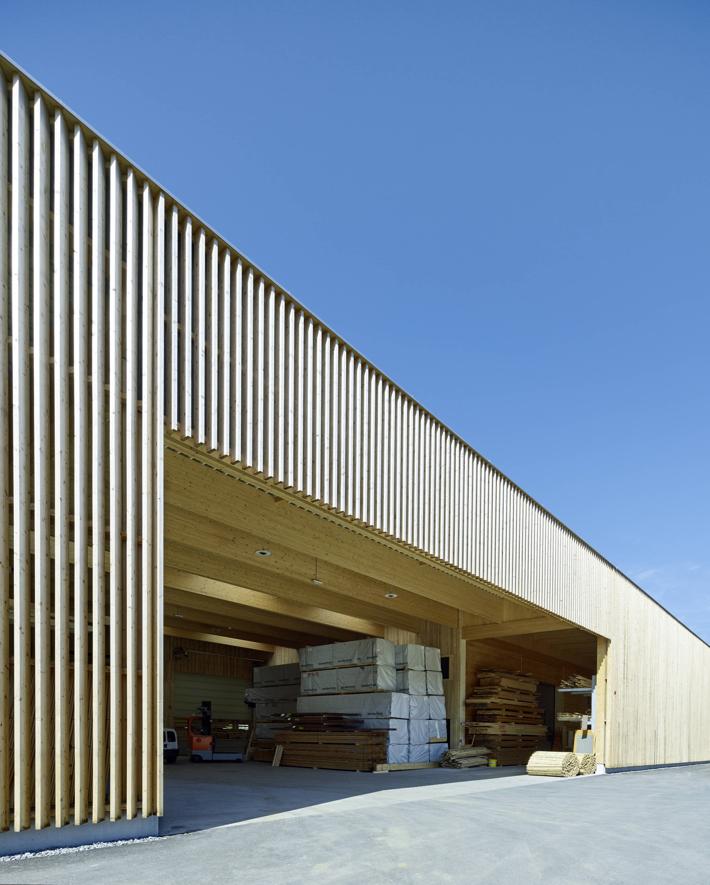 Um künftig regionale Wertschöpfungsketten wieder zu stärken entschieden sich die Bauherren ihren eingesessenen Betrieb für die Herstellung von Hobelwaren neu und leistungsfähiger auszurichten. Hierfür war es notwendig eine neue Betriebsanlage zu errichten, welche den hohen Platzbedarf für Lagerung, Herstellung und Kommissionierung ermöglicht. Eine Großform mit zwei Hallenschiffen bildet den Hauptbaukörper. Sowohl Anlieferung als auch die gesamte Infrastruktur wie beispielsweise das Silo und die Filteranlage sind dabei in die Großform integriert worden.
