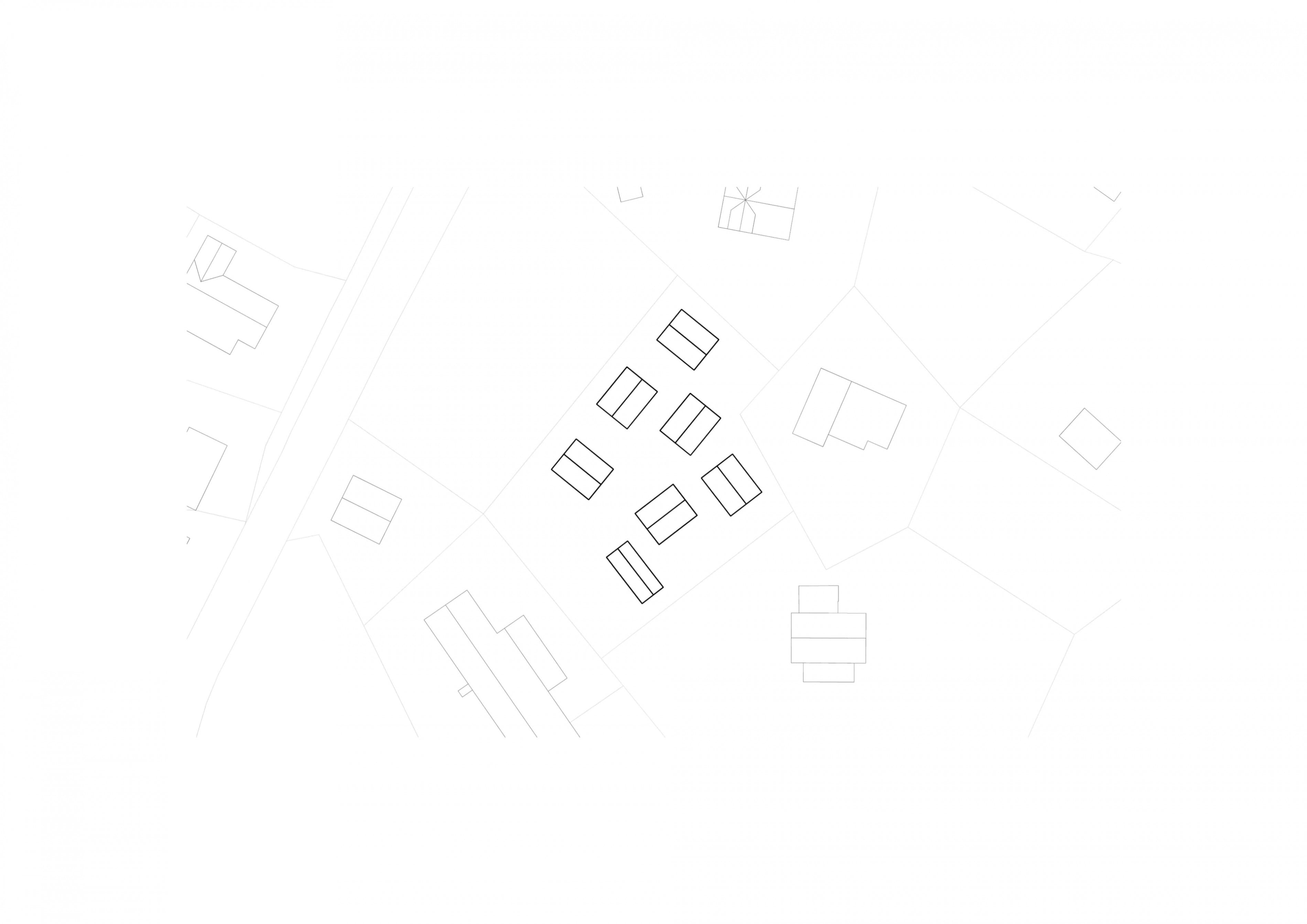 Die Anlage wird über die Landesstraße erschlossen. Im Süden der Anlage sind 10 Stellplätze und ein Versorgungsgebäude situiert. Die zweigeschossigen Hütten werden über einen fußläufigen Weg erschlossen. In der Mitte der Anlage ist ein Platz mit einem Brunnen der zum Verweilen einlädt. Im Erdgeschoß der Hütten befindet sind Kochen, Essen, WC, der Technikraum sowie eine Veranda mit Abstellraum. Im Obergeschoss befinden sich die Schlafräume, das Bad und eine Chill-Zone.