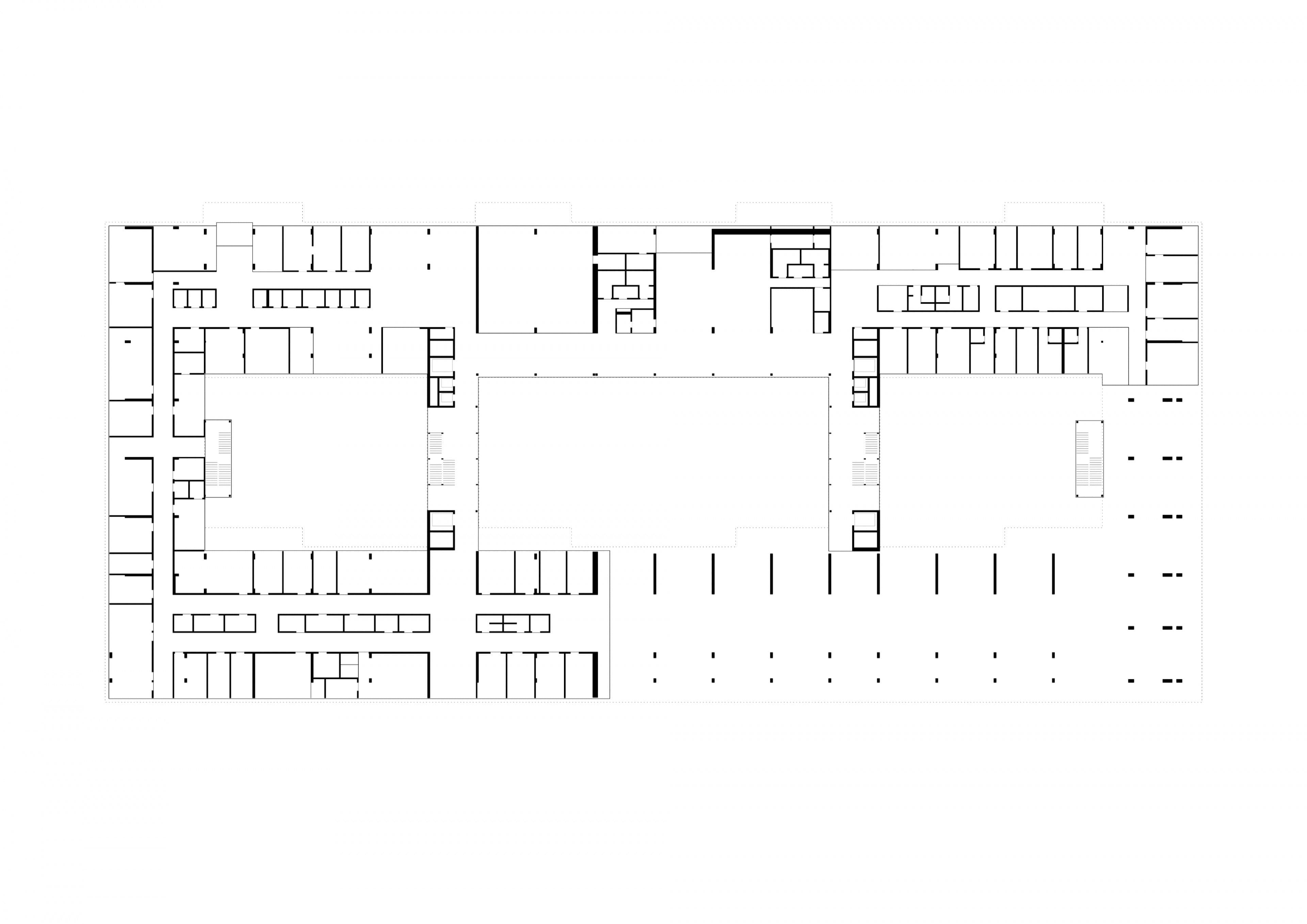 Das neue Bauwerk reagiert auf die komplexe städtebauliche Situation. Seine Struktur thematisiert die Überlagerung von Stadt und Park. Eine neuartige Mischung entsteht, welche die signifikanten Eigenschaften beider Kategorien miteinander verbindet.
