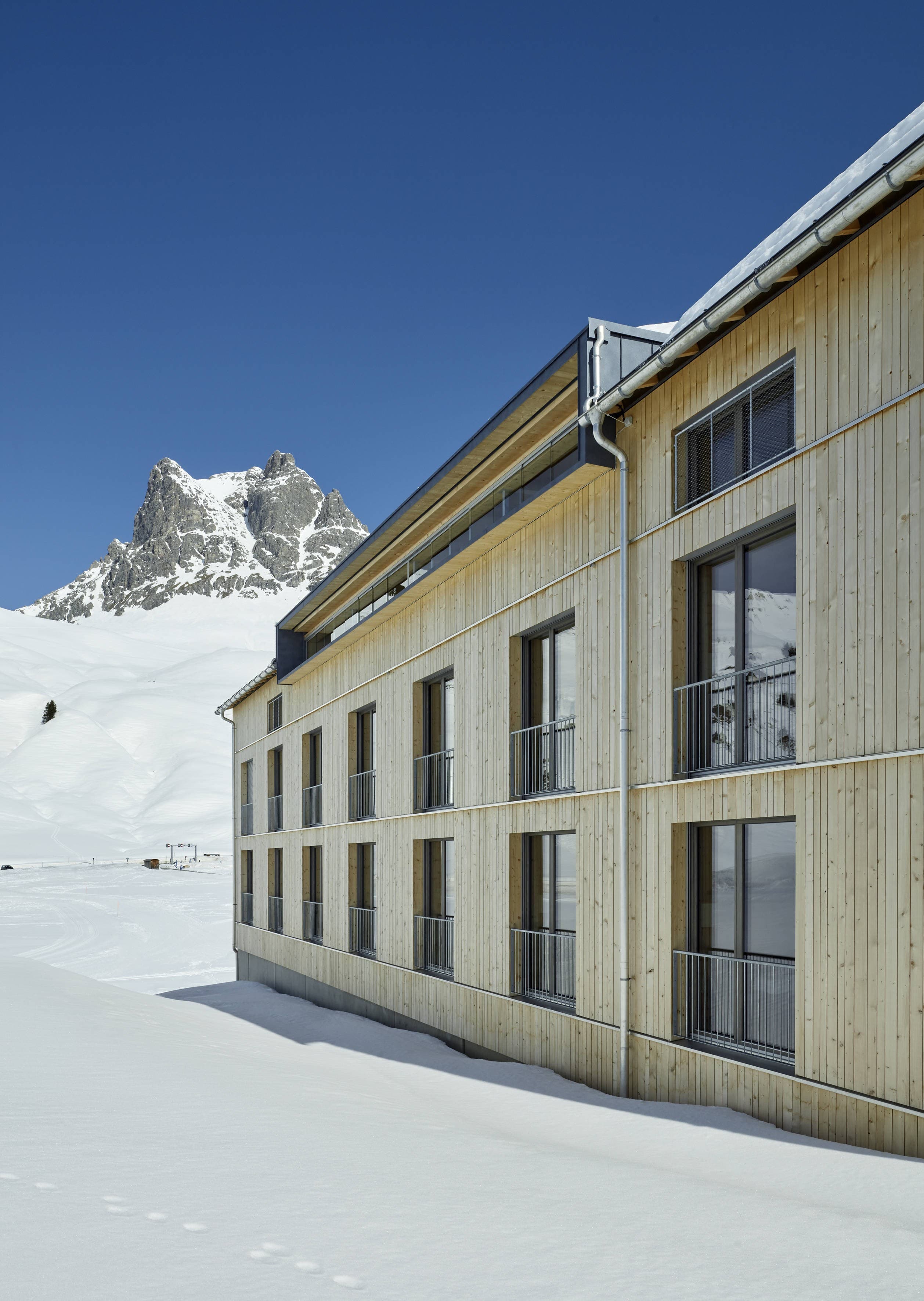 Beim Traditionsskigebiet Salober, im hinteren Bregenzerwald, entstand innerhalb einer Sommersaison ein neues Personalhaus für die Mitarbeiter der Liftbetriebe mit angeschlossenen Restaurants. Die bestehenden Garagen im Erdgeschoss sind um eine Pistenwalzenwerkstätte erweitert worden. Auf diesen massiven Sockel wurden dann 2,5 Geschoße mit 42 Appartements in Holzmodulbauweise gestapelt.
