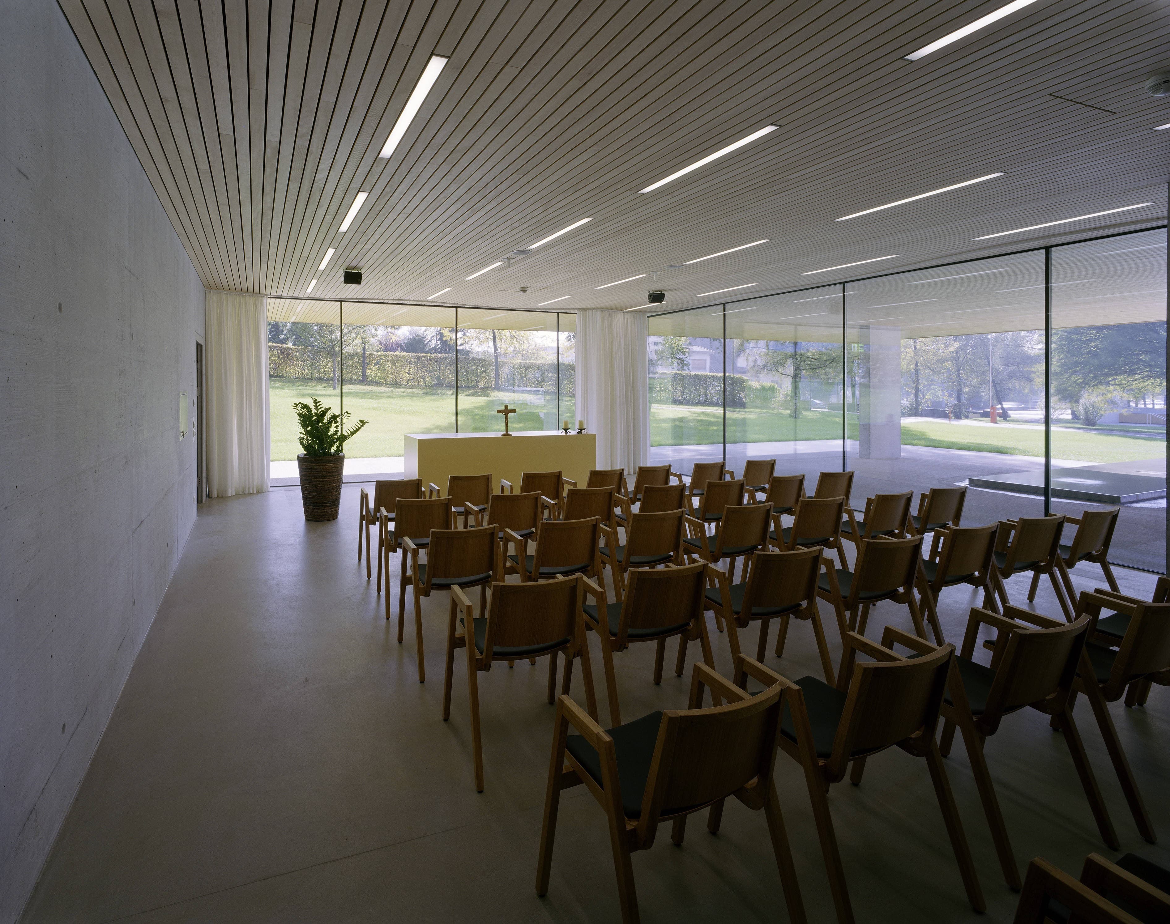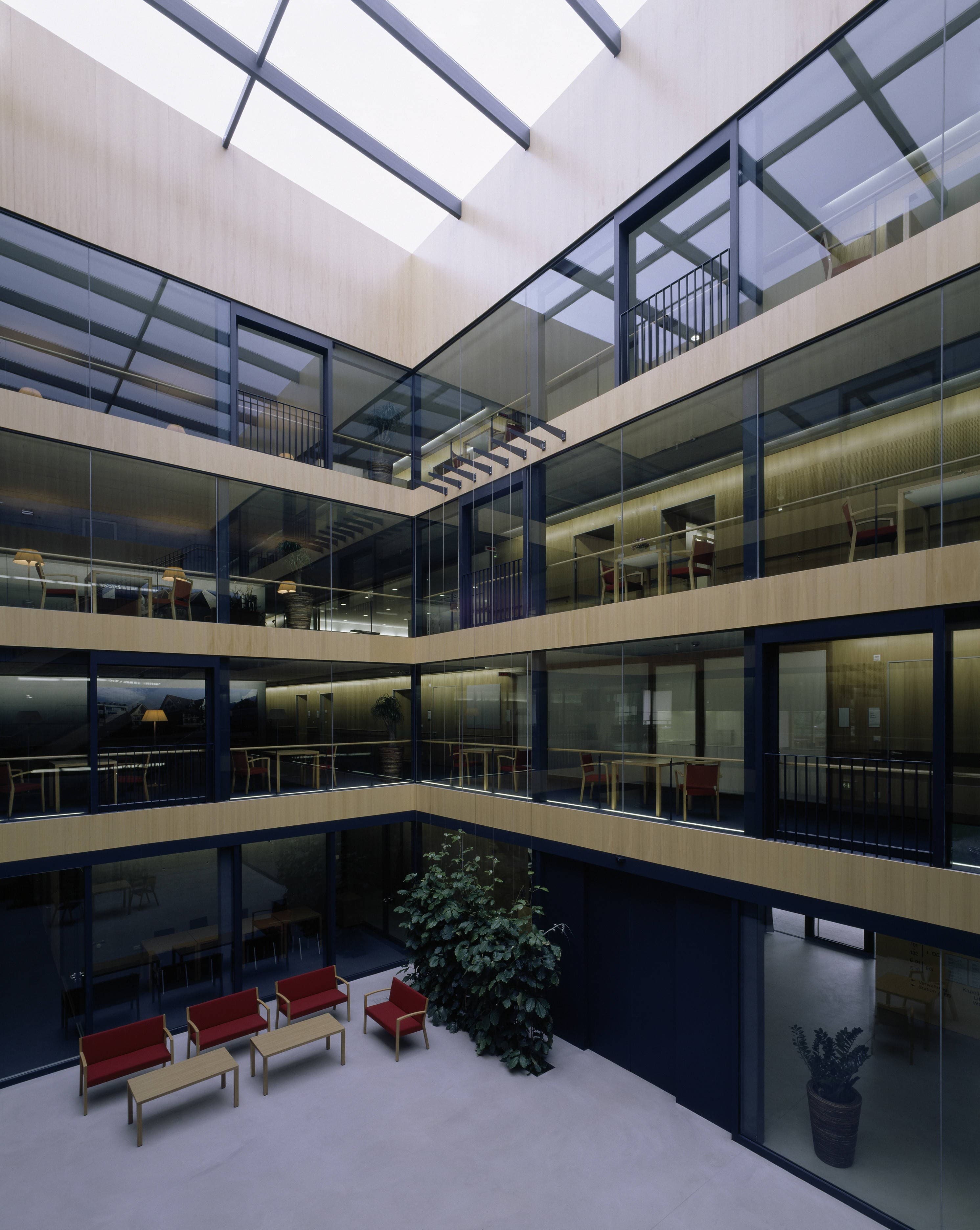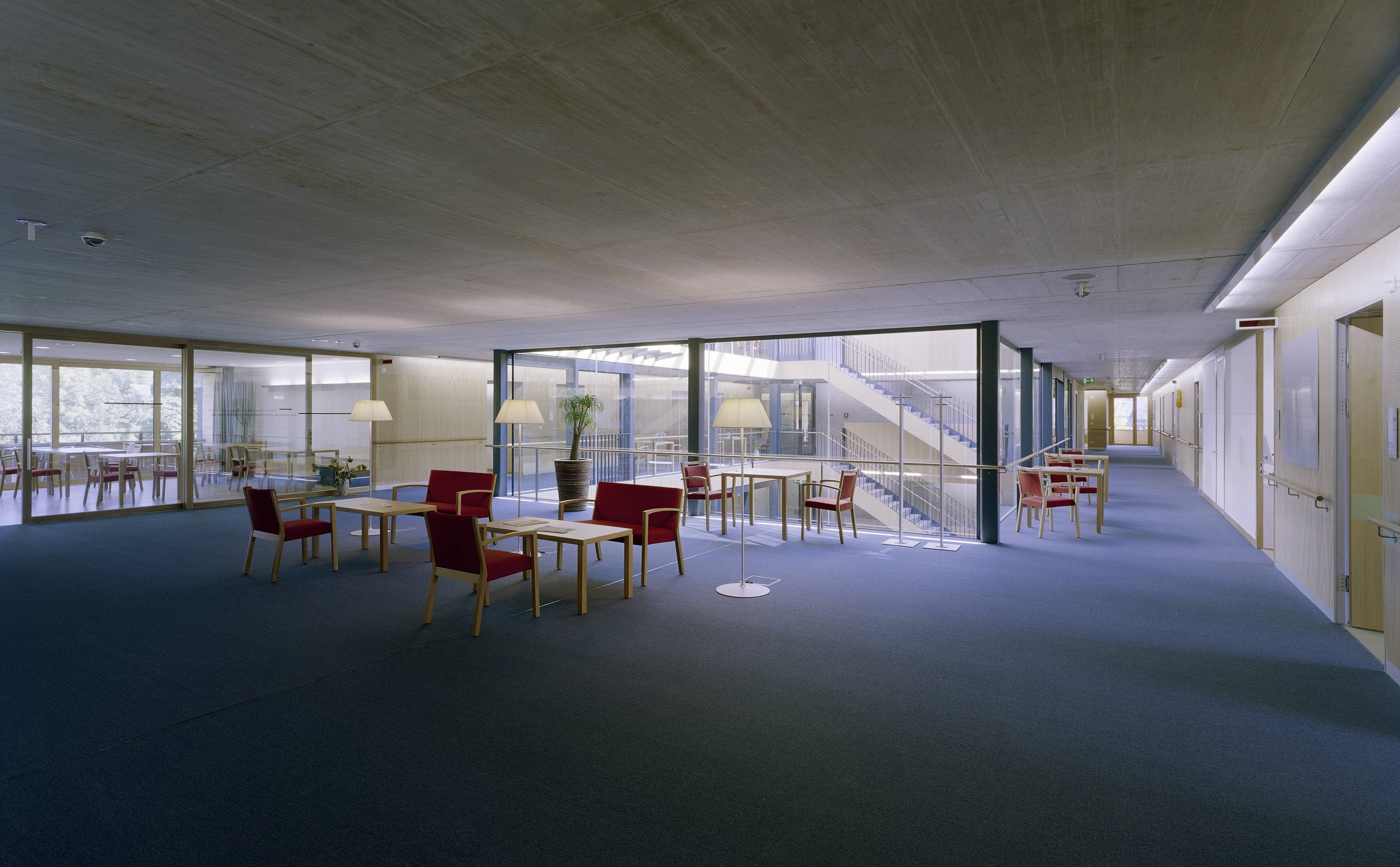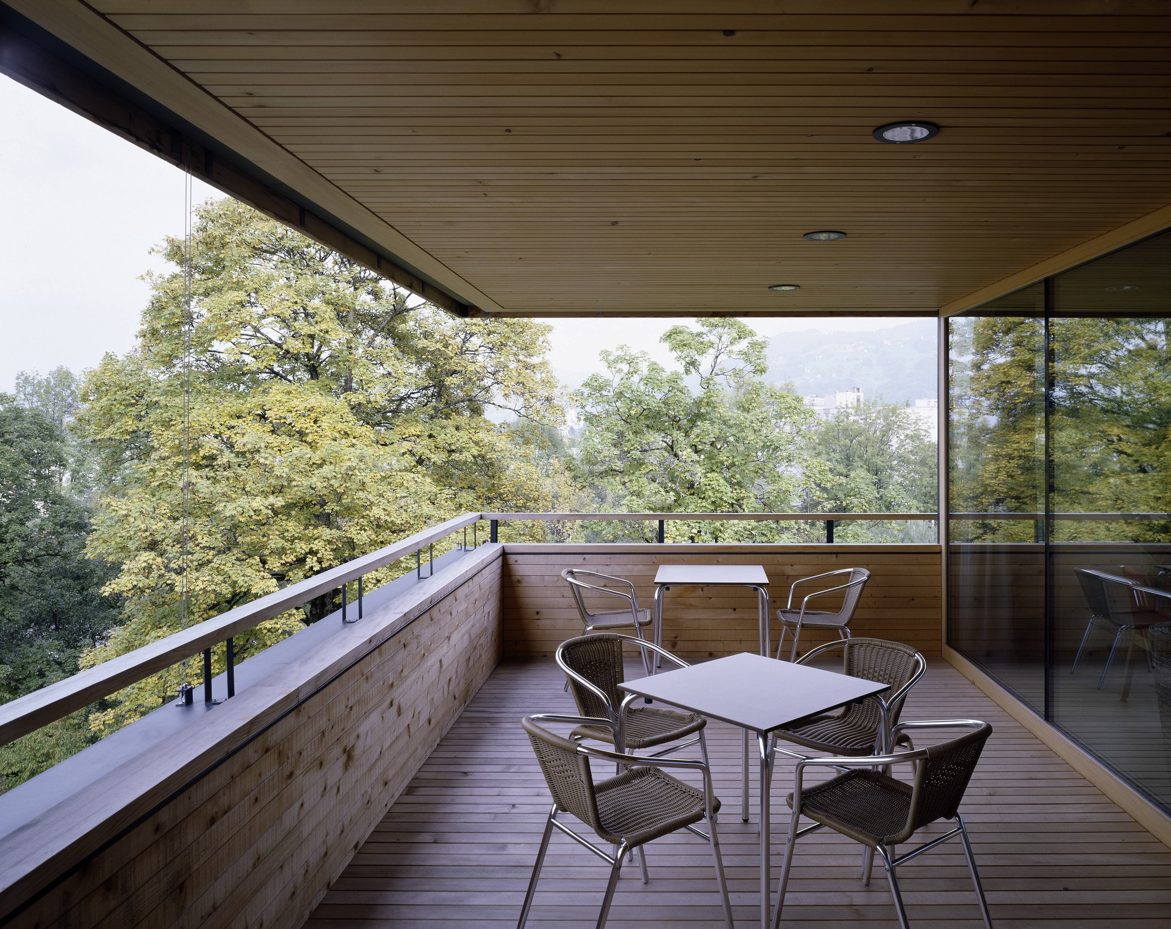 Pflegeheim mit 107 Zimmern, in einem parkähnlichen Grünraum entlang der Dornbirner Ache. Auf einem gläsernen Erdgeschoss (Eingang, Verwaltung, Kapelle, Mehrzweckräume und Dementenstation) schwebt ein dreigeschossiger Holzkubus. Die eingezogenen Loggien der versetzt angeordneten Aufenthaltsräume bilden tiefe Kerben, die sich mit den außen bündig liegenden Fensterbändern der Zimmer abwechseln.