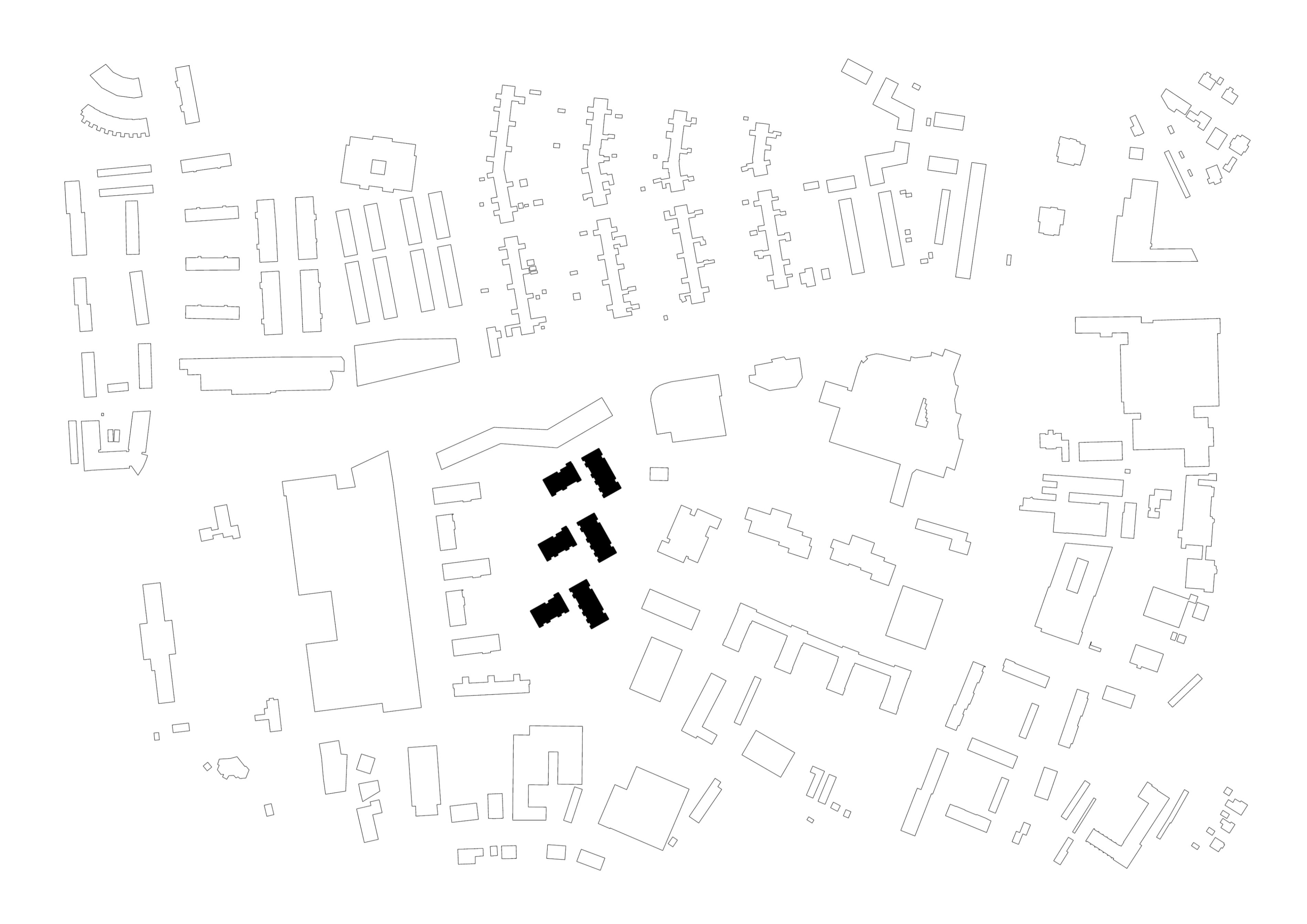 Auf einem Grundstück der ehemaligen ECA-Siedlung in Freiburg entsteht das neue Wohnquartier Schildacker der Freiburger Stadtbau mit 300 modernen Wohnungen. Die Gesamtbebauung ist in 3 Bereiche aufgeteilt, um eine höhere Vielfalt im Städtebau und in der Wohnungsstruktur zu erhalten. Ein langgestreckter, leicht zweimal abgeknickter Baukörper liegt parallel zur etwas höher frequentierten Basler Straße im Norden und bietet durch seine Stellung einen Schallschutz zum südlich angrenzenden Wohnquartier.