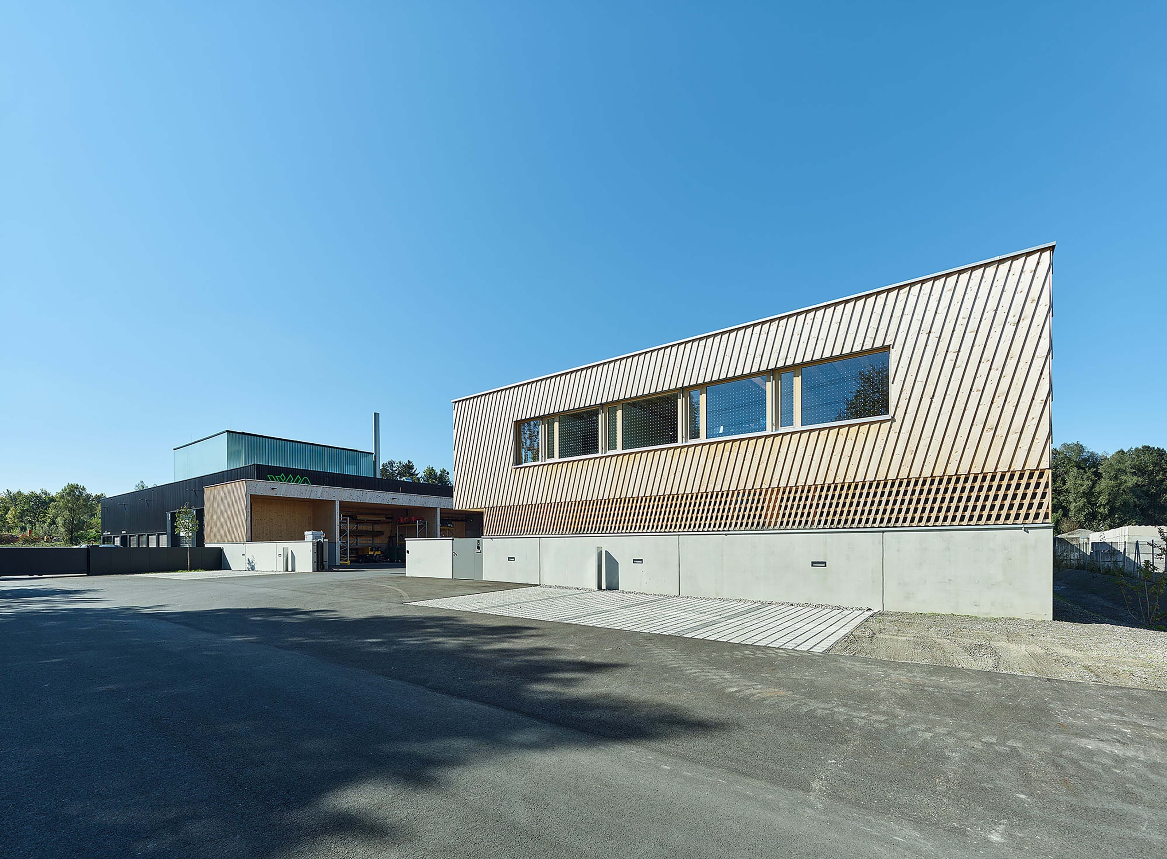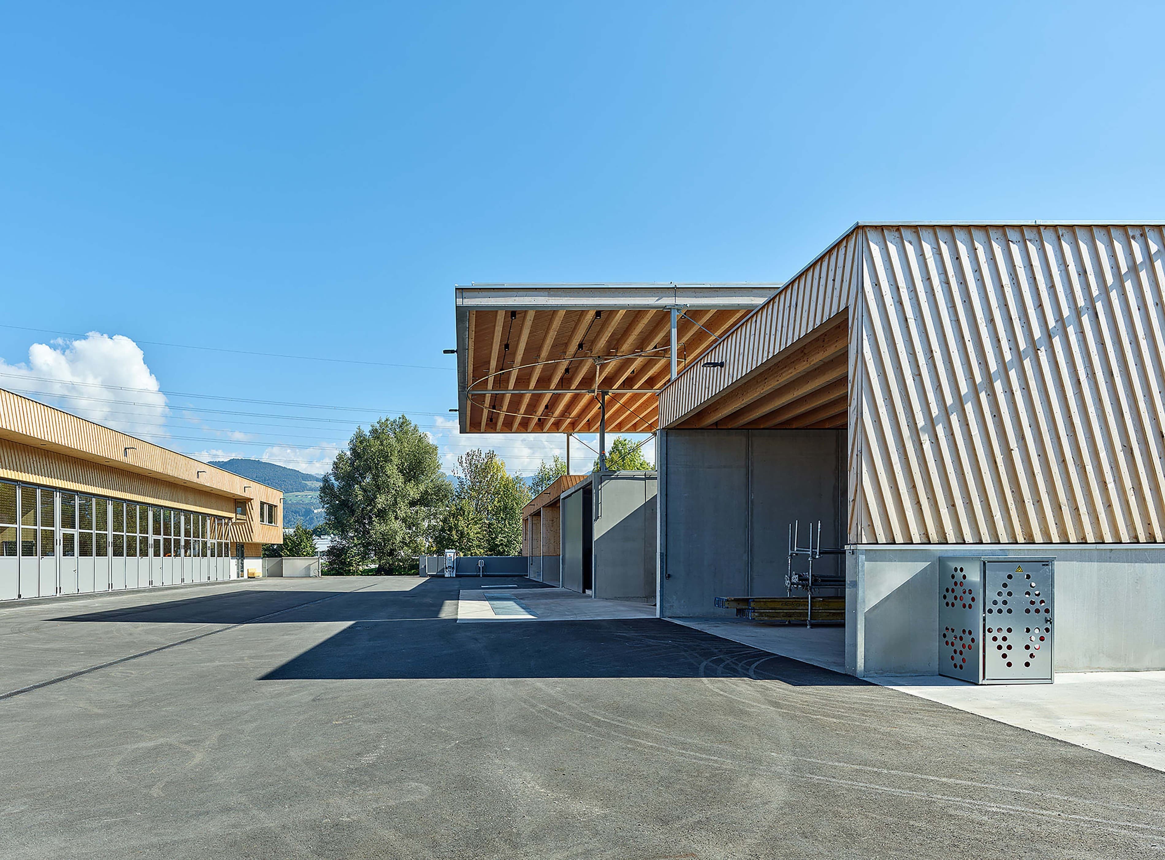 Am Rand eines Industriegebiets in Koblach wurde auf einem nahezu rechteckigen Grundstück eine kompakte Anlage realisiert, die verschiedene Nutzungen in wenigen klar strukturierten Baukörpern vereint. Diese treten als zusammenhängendes Ensemble in Erscheinung und orientieren sich in ihrer Setzung an funktionalen Abläufen und einer klaren räumlichen Ordnung.