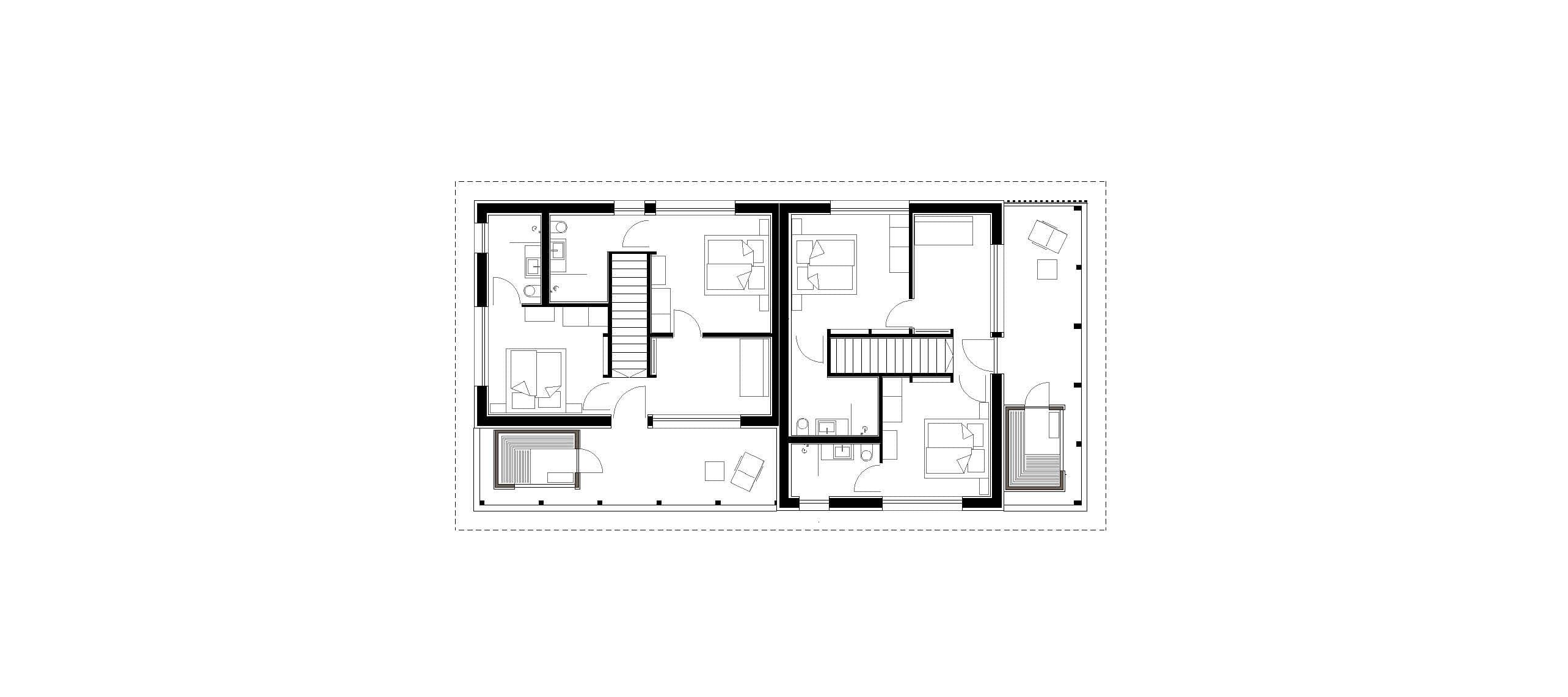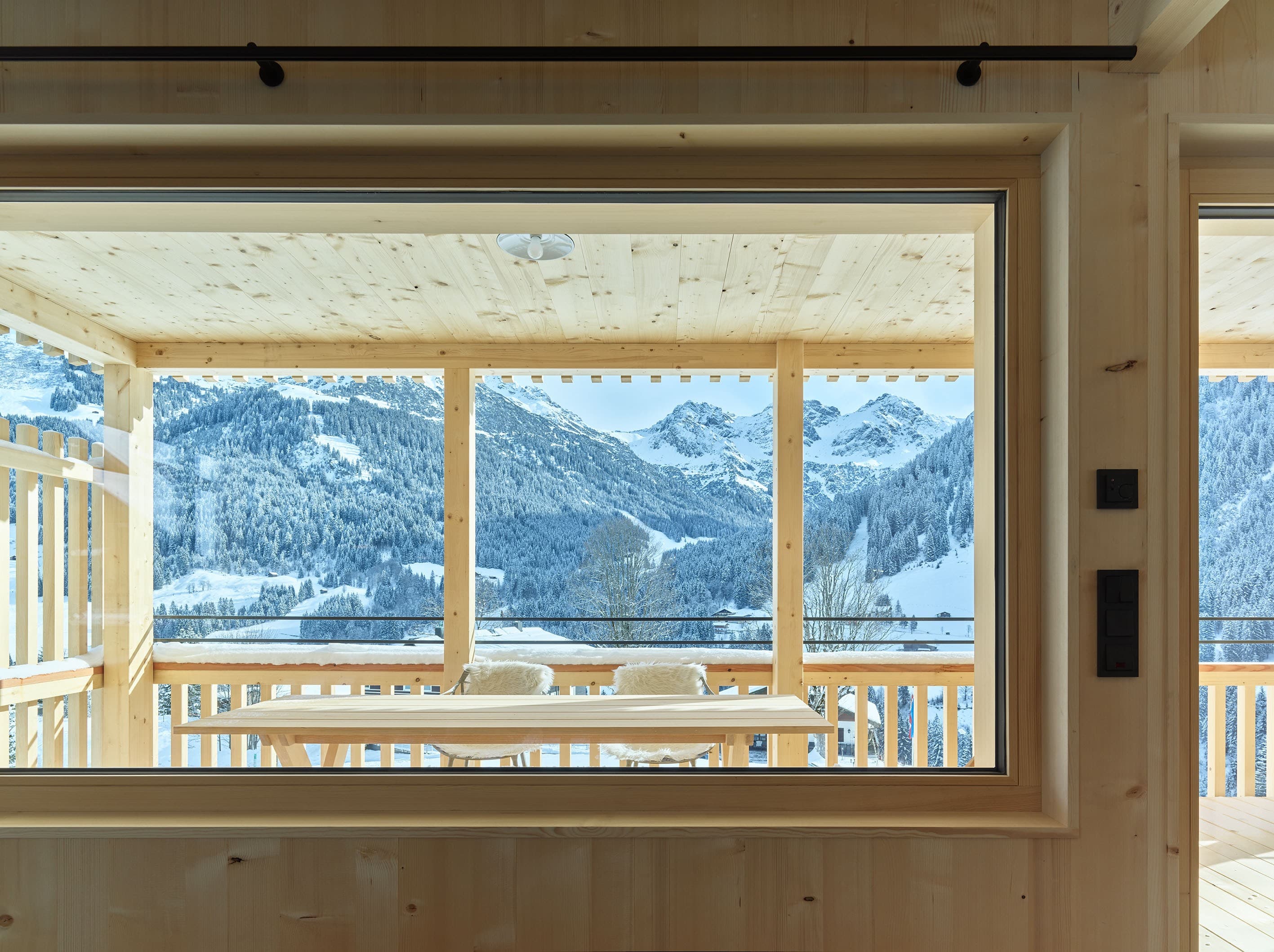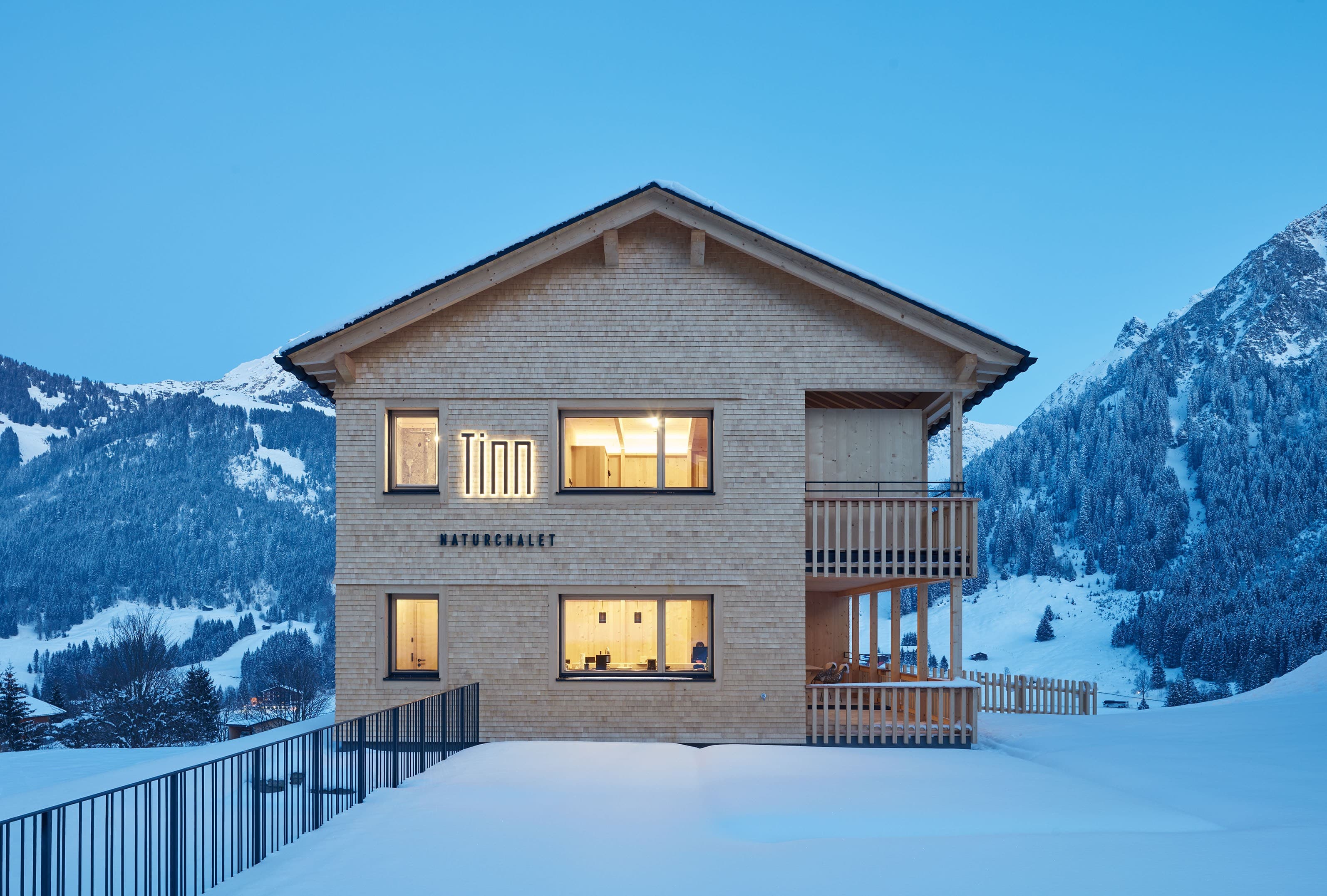 In Mittelberg (Kleinwalsertal) entstand 2022 dieses Wohn- und Apartmenthaus mit 4 Wohneinheiten und einer in das Gelände integrierten Parkgarage. Das Erdgeschoss wurde in Massivbauweise und die restlichen Geschosse (OG 1 und OG 2) in Holzmodulbauweise ausgeführt. Ein klassisches Satteldach schließt das Gebäude nach oben ab. Die Fassade besteht zum Großteil aus einer hinterlüfteten Holzverschindelung und im Bereich der Balkone aus vertikalen Holzleisten. Besonderer Wert wurde auf den Einsatz von nicht industriell hergestellten Produkten gelegt. So sind alle konstruktiven und verkleidenden Holzbauteile als Vollholz in Fichte oder Weißtanne ausgeführt, welche für Behaglichkeit und ein angenehmes Raumklima sorgen.