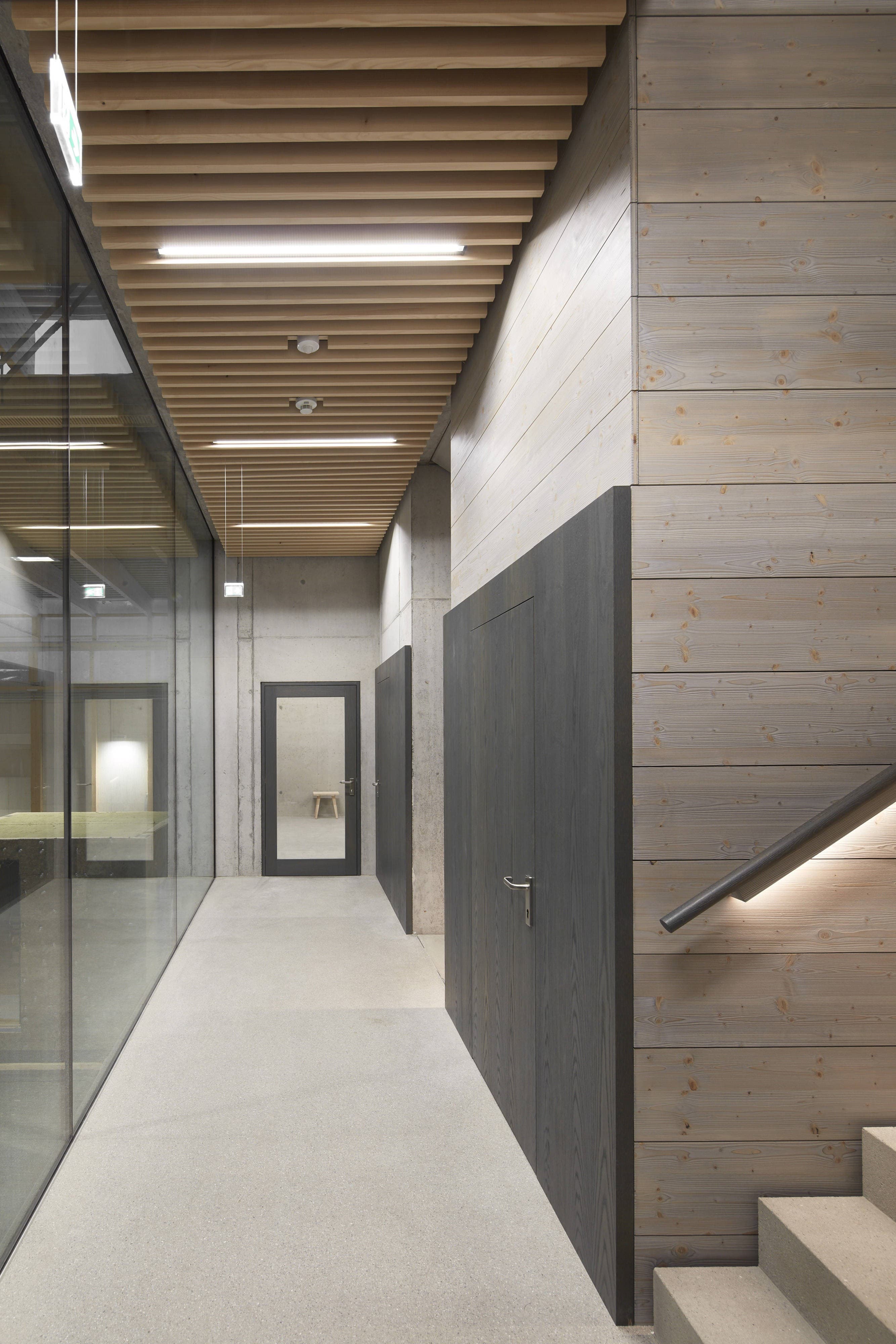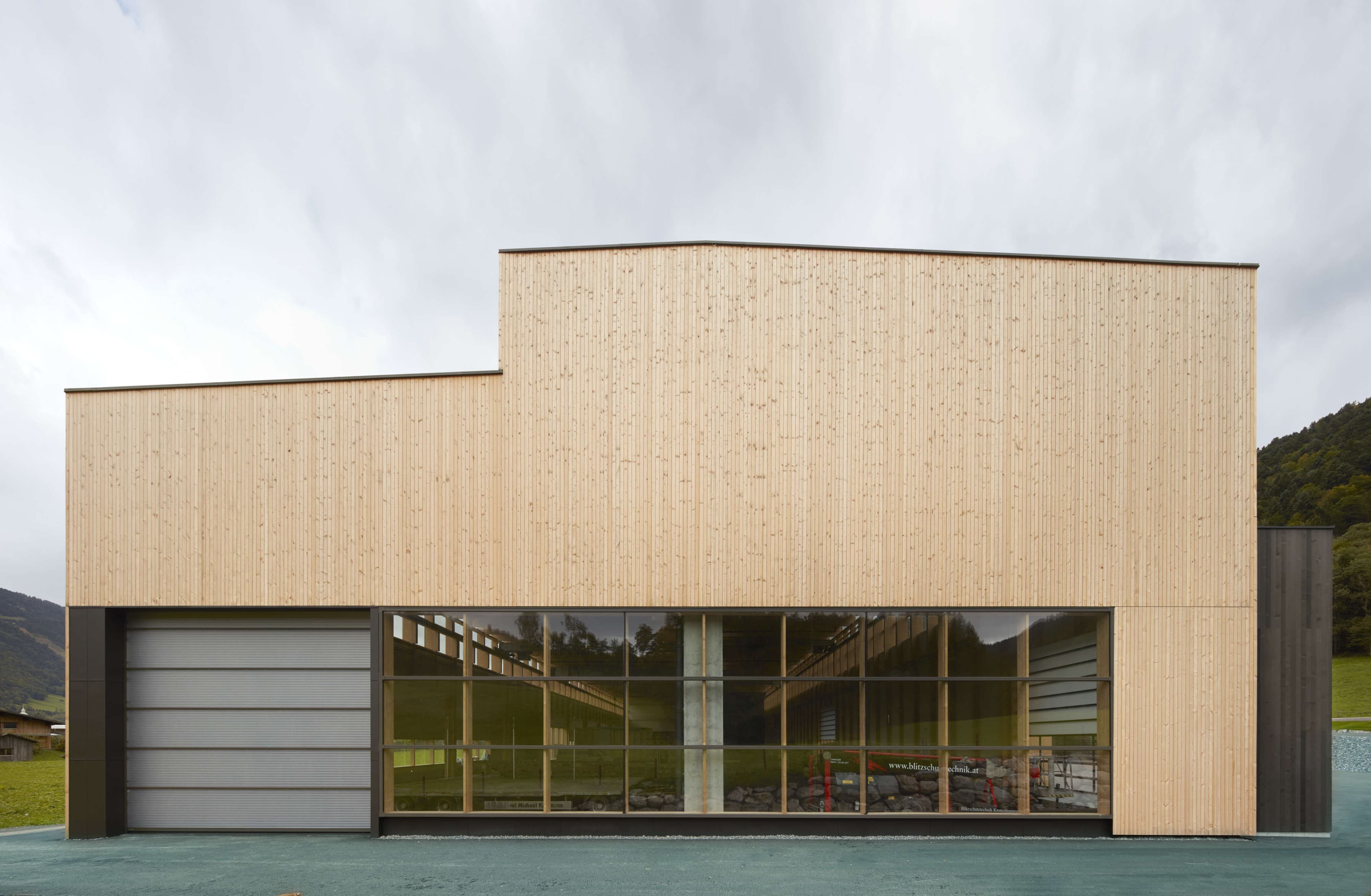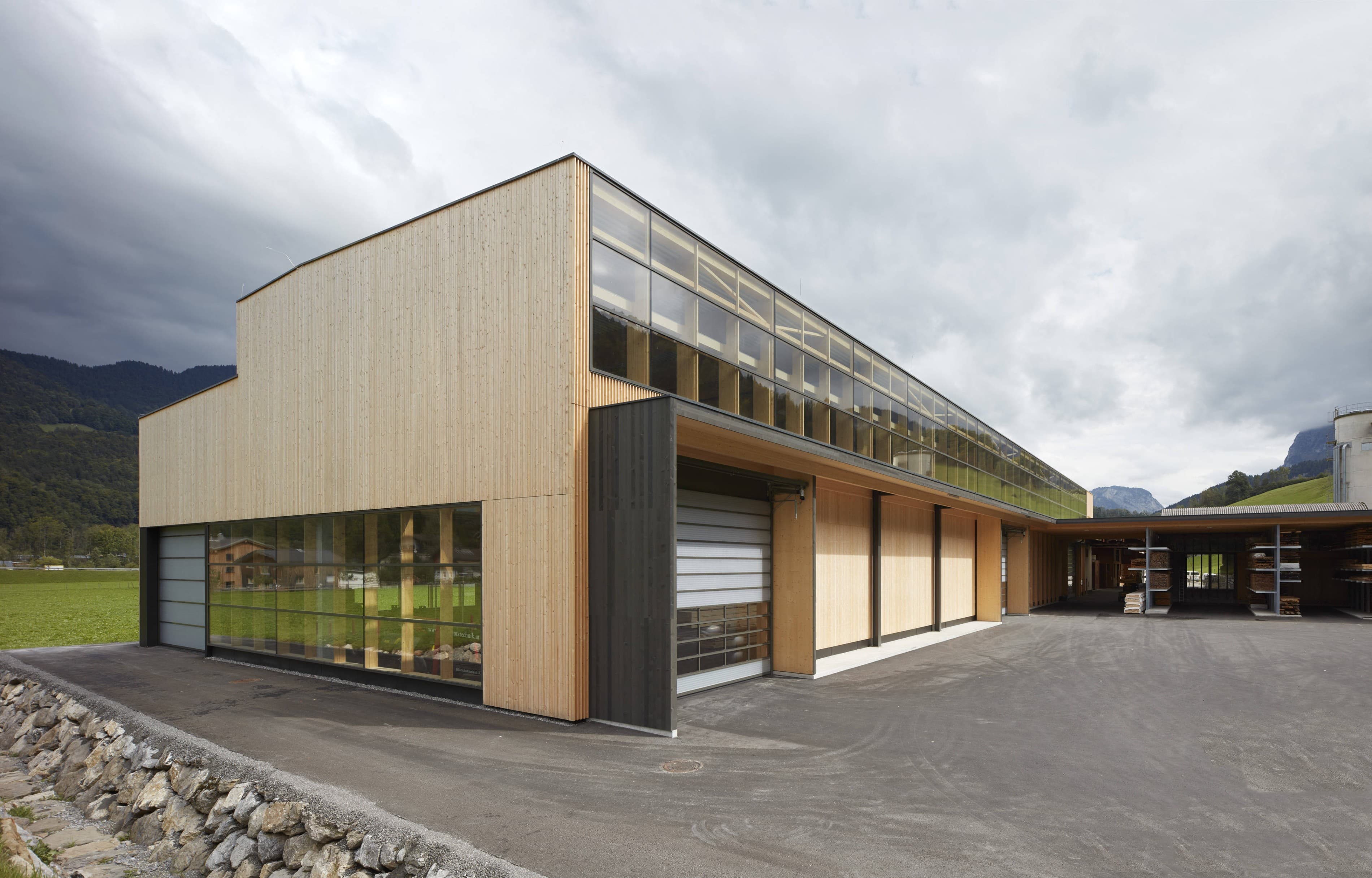 Die Zimmerei Tischlerei Kaufmann im Bregenzerwald ist ein Familienunternehmen in 4. Generation und beschäftigt sich neben moderner Holzbautechnologie auch mit dem Bau von Projekten in Raumzellenbauweise. Diese platzintensive Produktionsmethode erforderte den Neubau einer neuen Montagehalle zur Herstellung dieser modularen Raumzellen. Die Halle ist in 2 „Hallenschiffe“ unterteilt. Ein Längsschiff mit Geleisen ist für die Herstellung reserviert, im zweiten Schiff werden die fertigen Module gelagert.