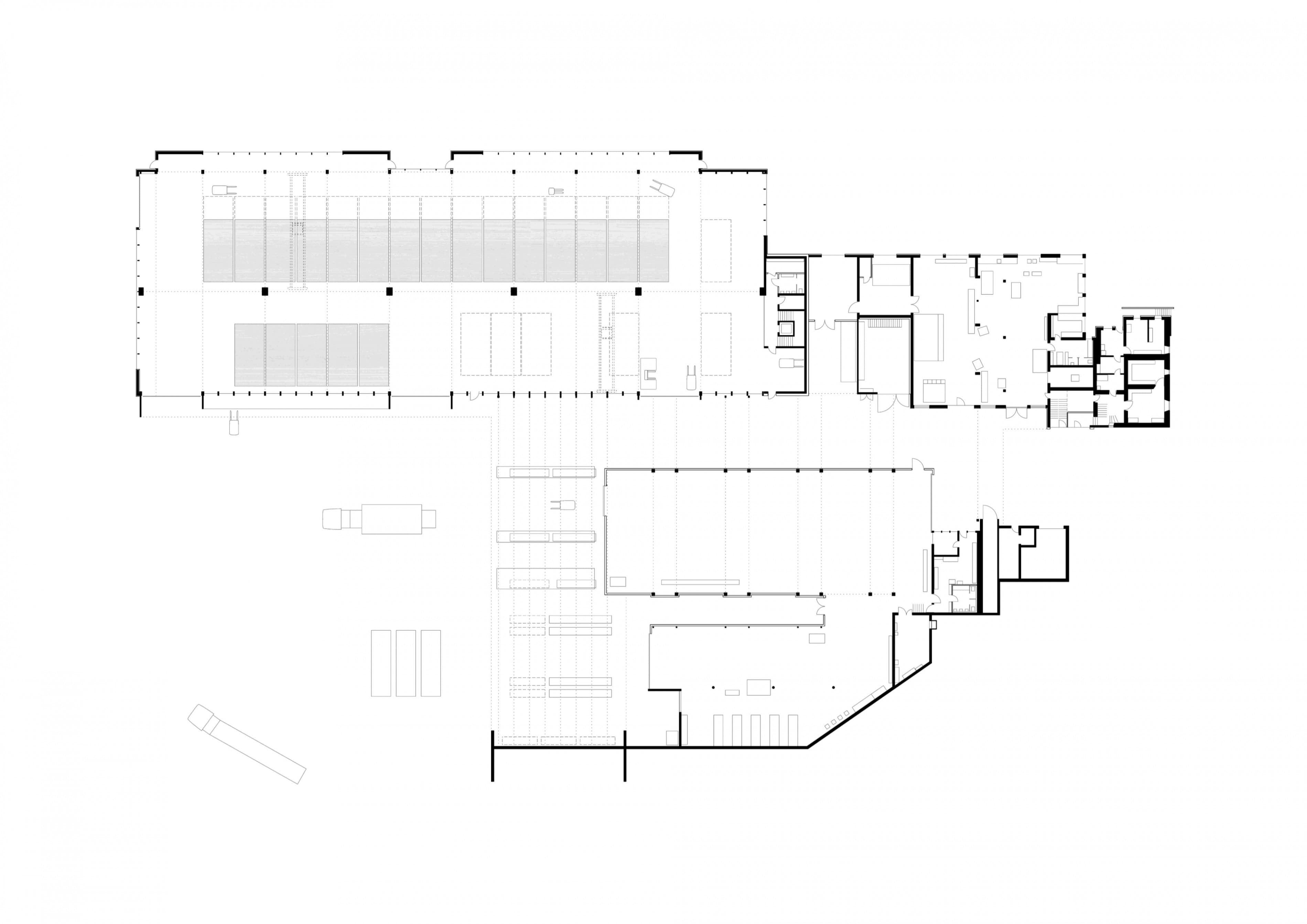 Durch die raumplanerische Rahmenbedingung war es notwendig, die Halle in ihrem äußeren Erscheinungsbild so niedrig wie möglich zu bauen, um dem Ortsbild zu entsprechen. Üblicherweise entstehen hohe Dachkonstruktionen, wenn schwere Kranbahnen und hohe Schneelasten über das Tragwerk abzuführen sind. Auch war es notwendig, die Anzahl der Mittelstützen auf ein Minimum zu reduzieren. Aus diesen Gründen wurde ein Fachwerk mit integrierten Kranbahnen als Konstruktionsprinzip entwickelt.